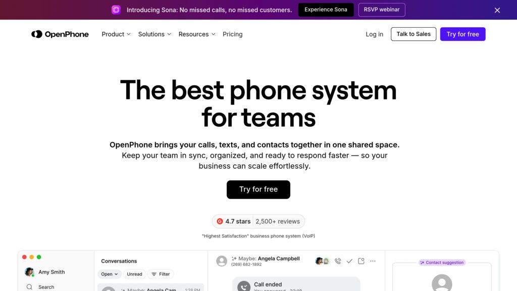 OpenPhone — это облачная VoIP-система, разработанная специально для стартапов, малого бизнеса и удаленных команд. Она предоставляет безлимитные звонки и SMS/MMS в США и Канаде, а также позволяет создавать общие номера для командной работы. Ключевая особенность — AI-функционал, который автоматически генерирует краткие сводки по звонкам и предлагает варианты ответов на входящие сообщения, значительно ускоряя коммуникацию. Система решает проблему разрозненных каналов связи и неэффективного управления клиентскими запросами. Объединяя звонки, SMS, голосовые сообщения и контакты в едином интерфейсе, доступном на любом устройстве, OpenPhone помогает бизнесу экономить время, улучшать качество обслуживания и повышать продуктивность сотрудников.