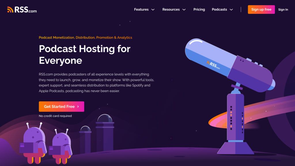 RSS.com — это комплексная платформа, предоставляющая полный цикл управления подкастами: от загрузки неограниченного количества эпизодов и хранения до автоматического распространения на все ключевые площадки, включая Spotify и Apple Podcasts. Платформа снимает головную боль с технической стороны вещания, позволяя создателям сосредоточиться на контенте. Интегрированные AI-инструменты, такие как автоматические транскрипты, повышают доступность и SEO-оптимизацию выпусков, а детальная IAB-сертифицированная аналитика дает четкое понимание аудитории и эффективности контента. Возможности монетизации через рекламу, подписки и донаты делают RSS.com полноценным решением для роста и заработка на подкасте.