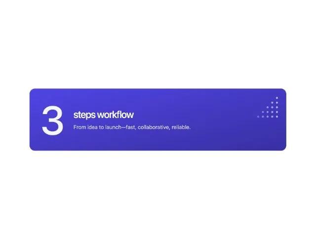 Адаптивная карточка Tailwind с 3 шагами: число, заголовок, текст. Для лендингов, онбординга, дашбордов. Подчеркивает простые многоэтапные процессы.