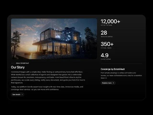 EstateVault began with a simple idea: make finding an extraordinary home feel effortless. What started as a small collective of agents and designers has grown into a nationwide network known for precision, transparency, and taste.