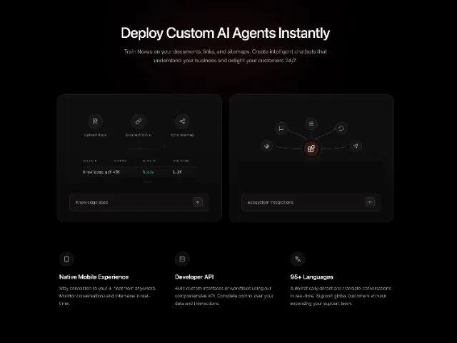 Train Nexus on your documents, links, and sitemaps. Create intelligent chatbots that understand your business and