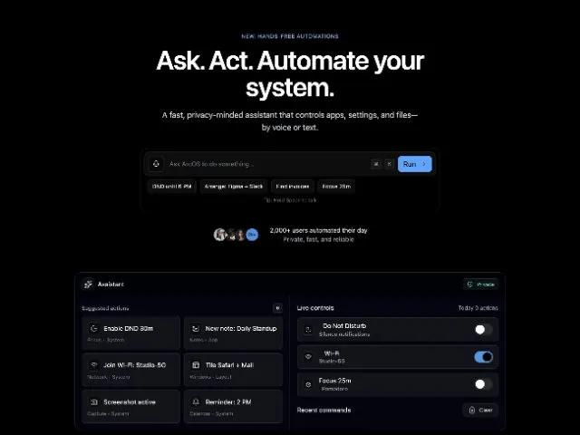A fast, privacy‑minded assistant that controls apps, settings, and files—by voice or text.