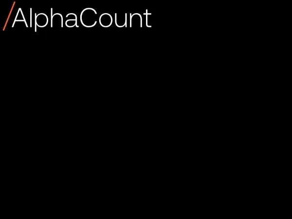 Логотип AlphaCount в белом и оранжевом цветах. Идеально подходит для брендинга и идентификации вашего проекта.