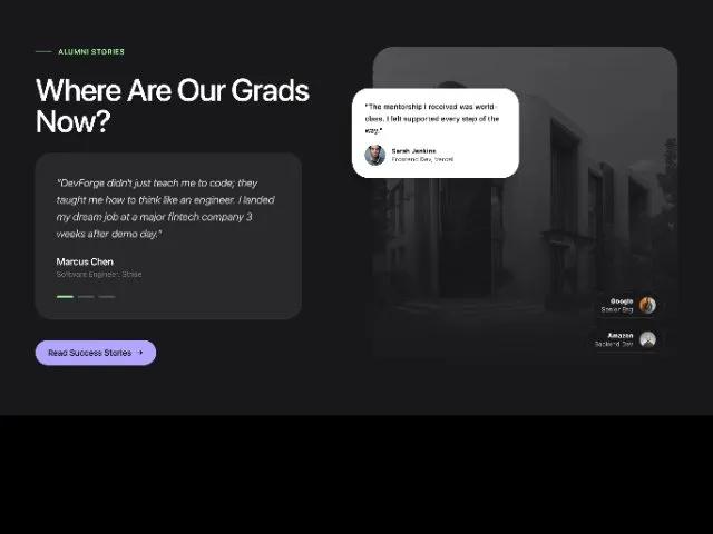 "DevForge didn't just teach me to code; they taught me how to think like an engineer. I landed my dream job at a major fintech company 3 weeks after demo day."
