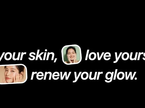 Адаптивный баннер с анимированным текстом и изображениями, реагирующими на скролл. Идеально для лендингов skincare, beauty, lifestyle.