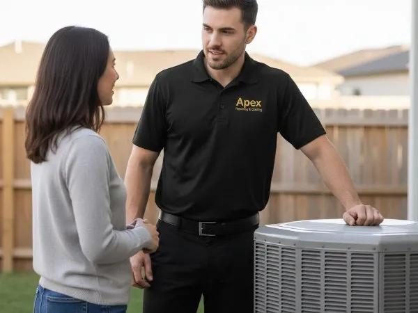 Подрядчик CleanBC и HPSC консультирует клиента после установки теплового насоса. Сертифицированный специалист по тепловым насосам в Ванкувере.