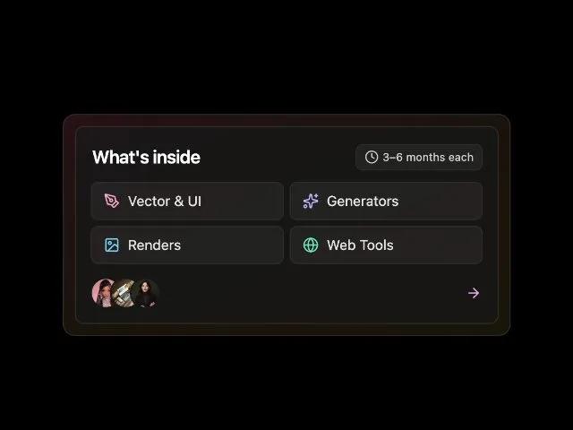 Карточка с содержимым бандла: галерея аватаров, список фич, CTA. Для страниц товаров.