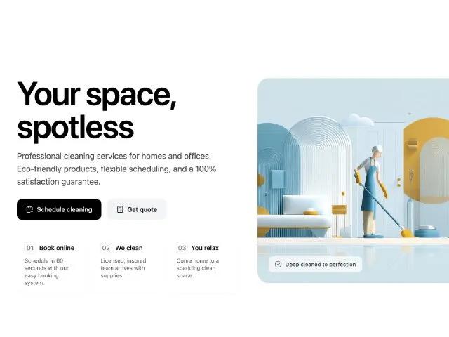 Professional cleaning services for homes and offices. Eco‑friendly products, flexible scheduling, and a 100% satisfaction guarantee.