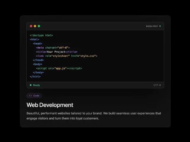 <p class="text-white/70 leading-relaxed font-geist-mono">Beautiful, performant websites tailored to your brand. We