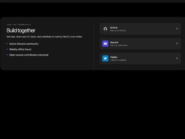 <p class="mt-3 text-sm text-neutral-300 font-geist">Get help, share your CLI tools, and contribute to making VibeCLI even better.</p>