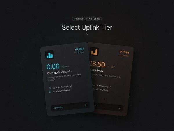 Интерактивные карточки тарифов в киберпанк-стиле. Выбор планов для SaaS и приложений с анимацией, WebGL и Tailwind CSS.