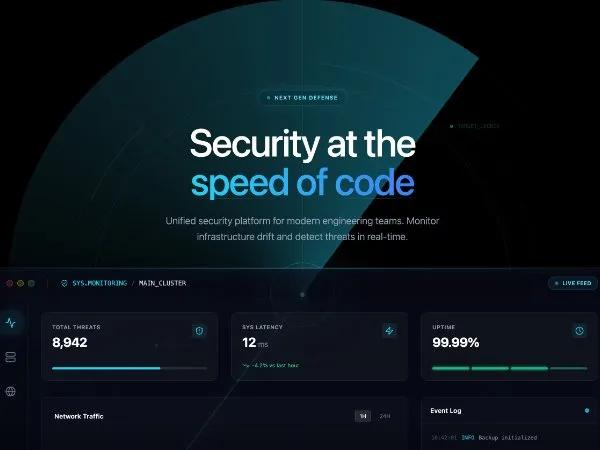 Hero-секция с анимированным радаром и дашбордом безопасности. UI-компонент для SaaS, DevOps, мониторинга. Tailwind, Chart.js.