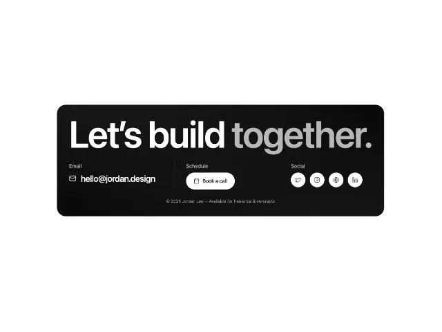 <p class="mt-6 text-center text-[11px] text-white/60">© <span id="year">2025</span> Jordan Lee — Available for freelance & contracts</p>
