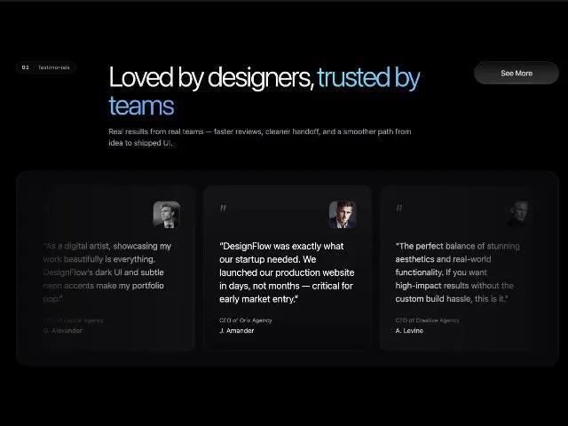everything. DesignFlow’s dark UI and subtle neon accents make