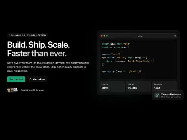 Nova gives your team the tools to design, develop, and deploy beautiful experiences without the heavy lifting. Ship higher quality products in days, not months.