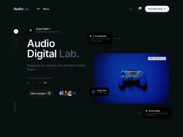 <a href="#" class="text-2xl font-semibold tracking-tight">Audio<span class="text-slate-600">Lab.</span></a>