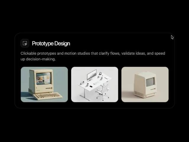 Карточка услуги прототипирования дизайна: визуальные примеры, интерактивность. Идеально для UX-портфолио.