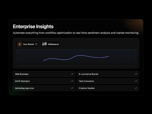 Карточка "Enterprise Insights" с градиентом и SVG-графиком. Идеальна для лендингов и дашбордов, отображающих аналитику. Адаптивна, создана на Tailwind CSS.