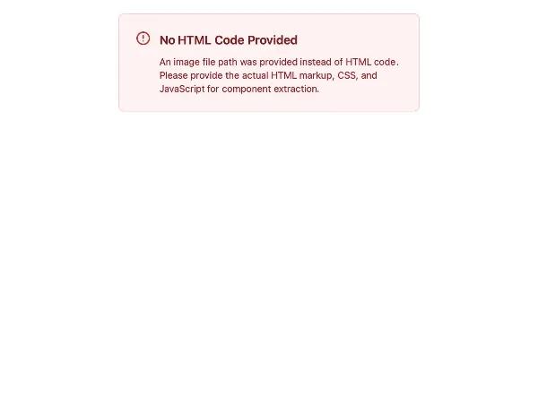 <p class="text-red-800 text-sm">An image file path was provided instead of HTML code. Please provide the actual HTML markup, CSS, and JavaScript for component extraction.</p>
