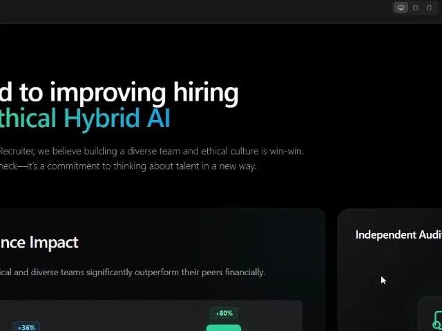 Секция Tailwind для найма с помощью ИИ: статистика, аудит, отчеты. Демонстрирует влияние ИИ на рекрутинг и нулевую предвзятость.