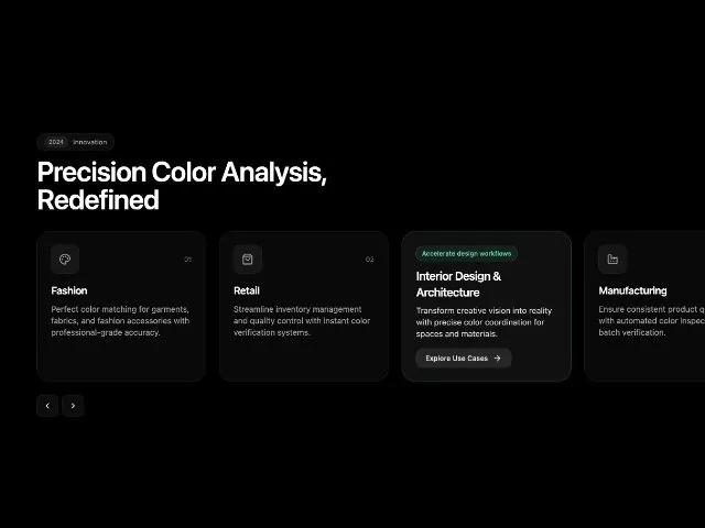 <p class="text-sm text-neutral-400 group-hover:text-neutral-300 transition-colors font-sans" style="">Perfect color matching for garments, fabrics, and fashion accessories with professional-grade accuracy.</p>