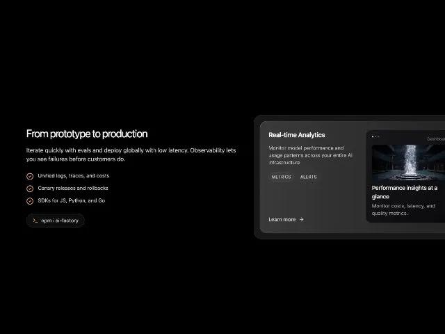 Iterate quickly with evals and deploy globally with low latency. Observability lets you see failures before customers do.