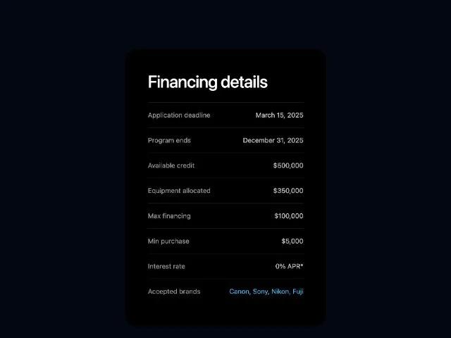 <h3 class="text-3xl sm:text-4xl text-white tracking-tight font-geist font-medium" style="">Financing details</h3>