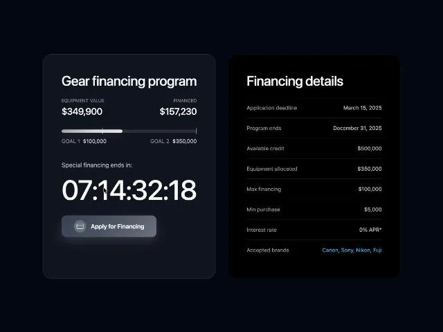 <h3 class="text-3xl sm:text-4xl text-white tracking-tight font-geist font-medium" style="">Gear financing program</h3>