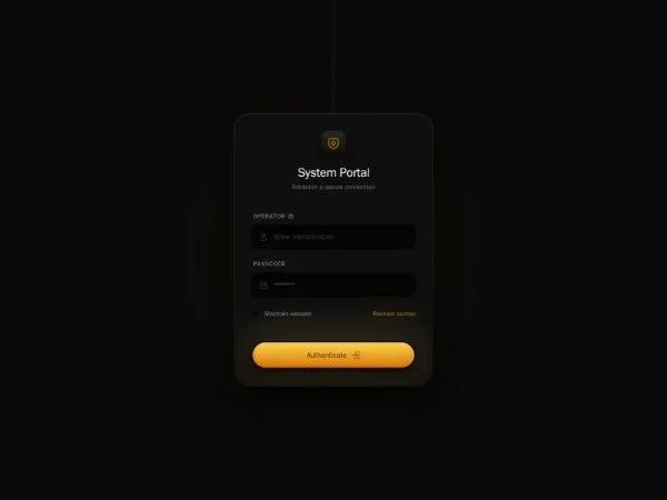 Футуристичная карточка входа в систему: темный киберпанк-стиль, анимированный фон. Поля ID, пароля, чекбокс "запомнить сессию", кнопка "войти". Для безопасного входа в приложения и админ-панели.