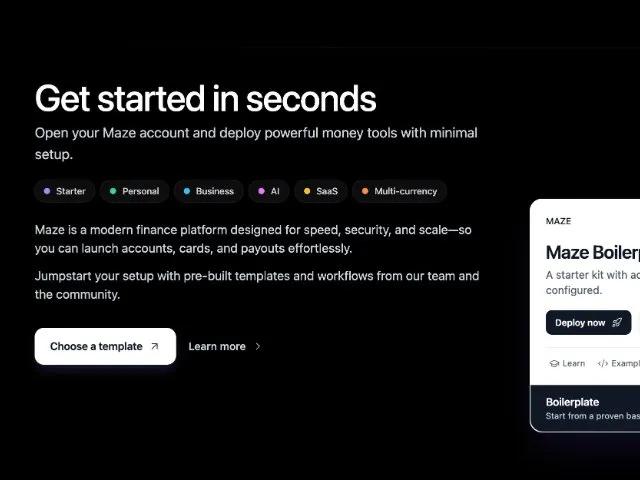 Maze is a modern finance platform designed for speed, security, and scale—so you can launch accounts, cards, and payouts effortlessly.
