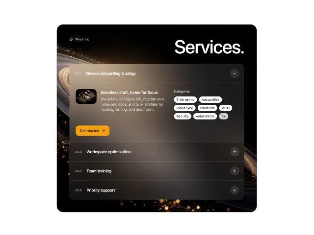 <p class="text-neutral-300 text-sm mt-1 font-geist">We unbox, configure OS, migrate your notes and docs, and tailor profiles for reading, writing, and deep work.</p>