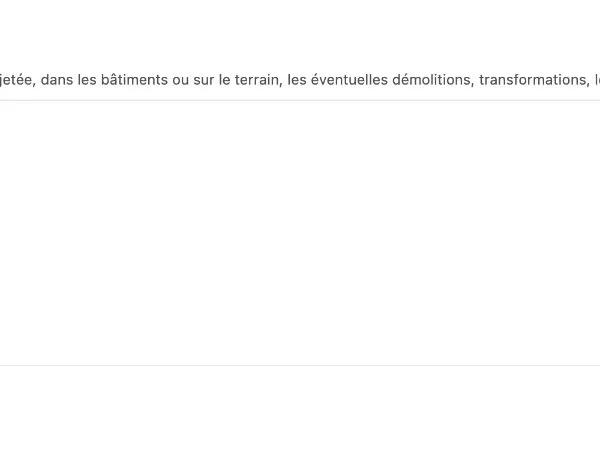 <div class="text-[12px] text-neutral-600 mt-1 mb-2">Décrivez l'entièreté du projet et le but des travaux : précisez l'activité accueillie, existante et/ou projetée, dans les bâtiments ou sur le terrain, les éventuelles démolitions, transformations, les nouvelles constructions ou installations, création de logements, aménagement des abords, etc.</div>