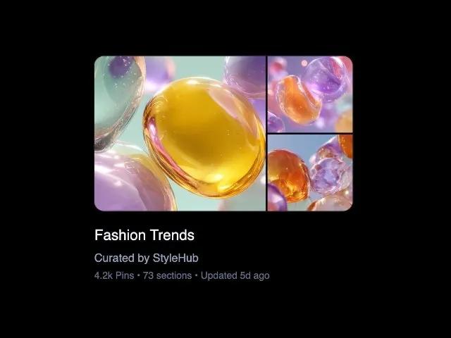 <p class="mt-1 text-xs text-slate-500" style="font-family:'Inter',sans-serif">4.2k Pins • 73 sections • Updated 5d ago</p>