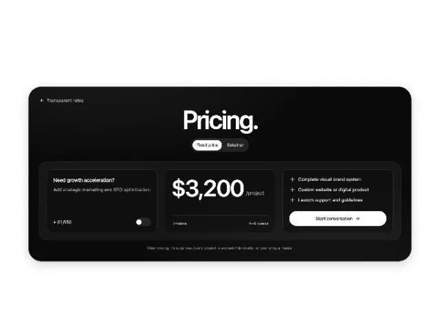 <p class="mt-4 text-[11px] text-white/50 font-geist text-center">Clear pricing, no surprises. Every project is