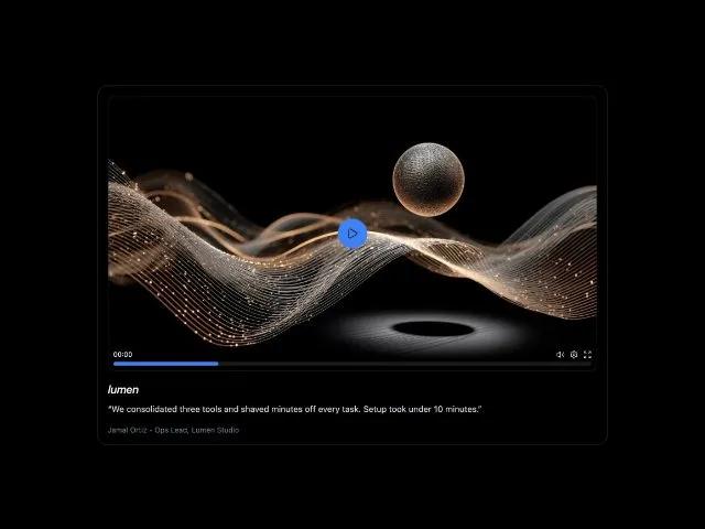 <p class="mt-4 text-xs text-gray-500">Jamal Ortiz • Ops Lead, Lumen Studio</p>