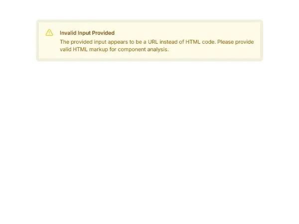 <p class="text-sm text-yellow-700">The provided input appears to be a URL instead of HTML code. Please provide valid HTML markup for component analysis.</p>