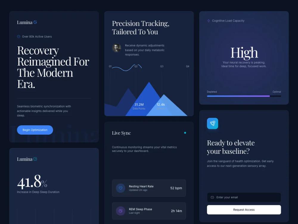herosectiontailwindanalyticsdashboardctaresponsiveanimatedluminahealthrecoveryreimaginedmoderneraprecisiontracking