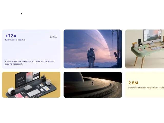 Адаптивная сетка с карточками метрик и изображений. Идеально для витрин продуктов, создавая визуальный интерес.