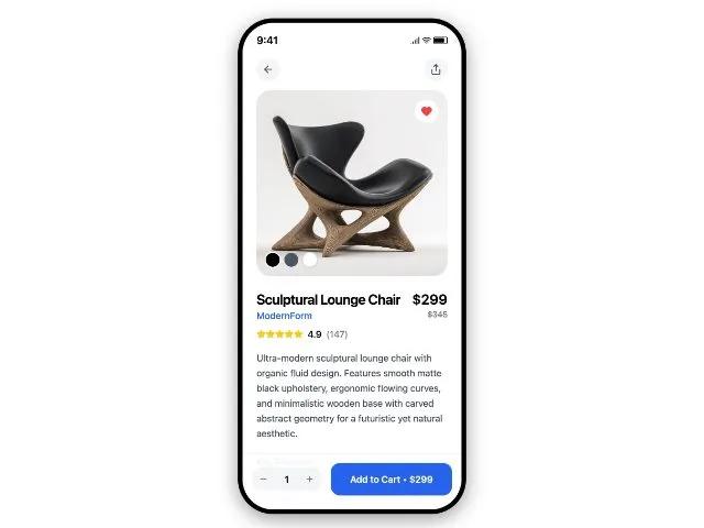 Мобильная страница товара в стиле iOS с кнопкой "Добавить в корзину". Идеально для e-commerce приложений и прототипов.