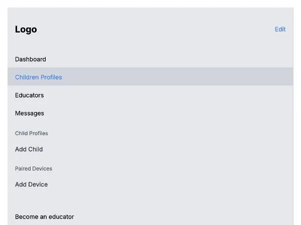 <div class="mt-5 px-5 pb-2.5 text-sm text-gray-600">Child Profiles</div>