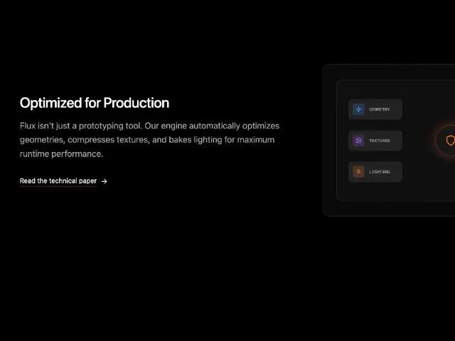 Блок с оптимизацией производства: 2 колонки, 3D-анимация, CTA. Tailwind CSS. Для страниц продукта/маркетинга, объясняющих тех. преимущества.