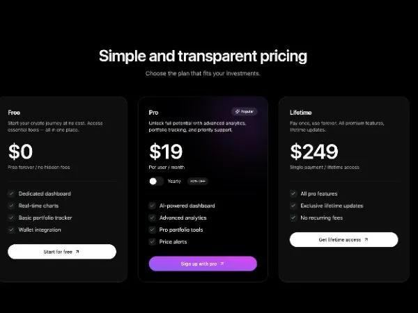 Адаптивный блок с 3 тарифами (Free, Pro, Lifetime) на Tailwind CSS. Идеален для SaaS/Fintech лендингов.