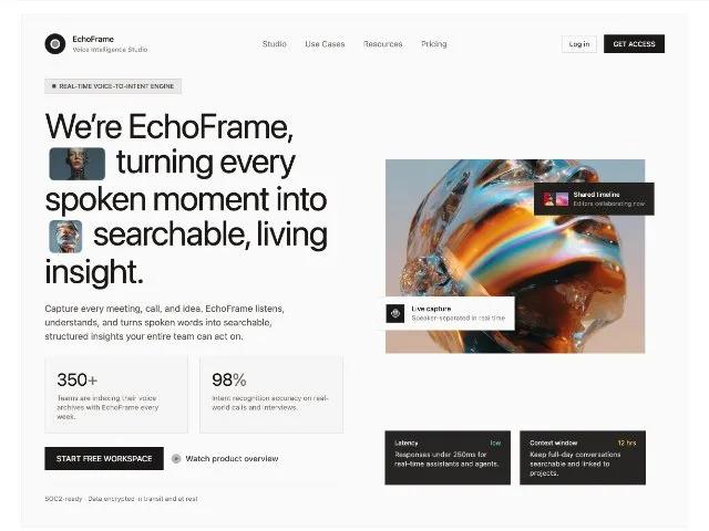 Capture every meeting, call, and idea. EchoFrame listens, understands, and turns spoken words into searchable, structured insights your entire team can act on.