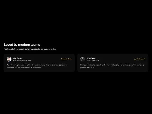 <h2 class="text-2xl sm:text-3xl font-semibold tracking-tight">Loved by modern teams</h2>