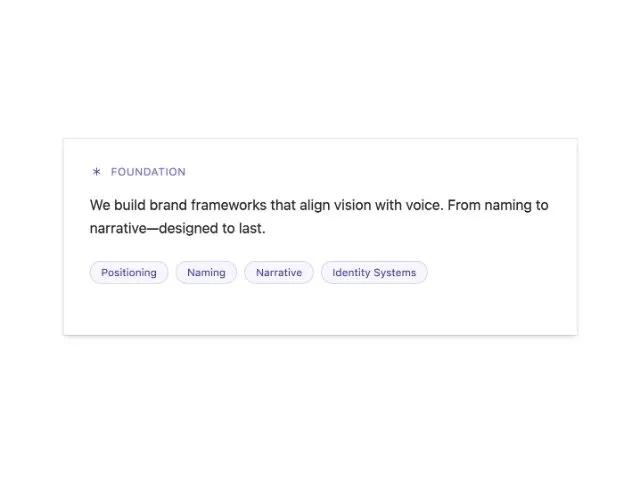 We build brand frameworks that align vision with voice. From naming to narrative—designed to last.