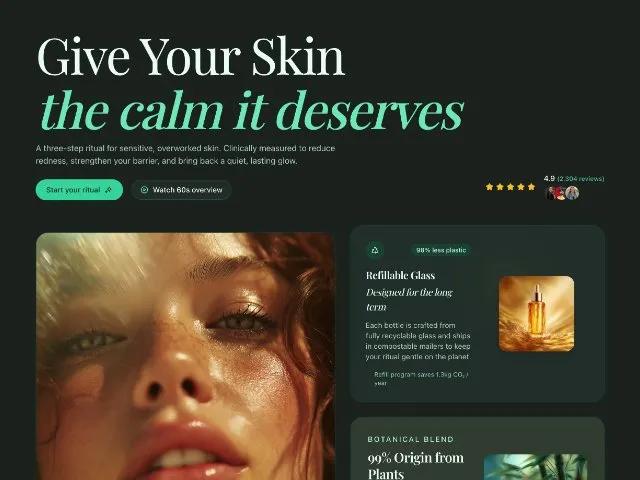 Skincare Hero Section with Ratings and Feature Cards