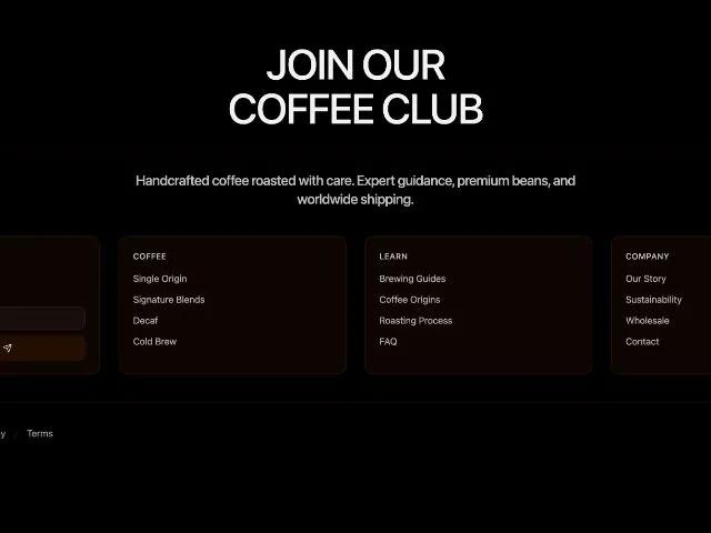 Tailwind Coffee Footer with Newsletter and Social Icons