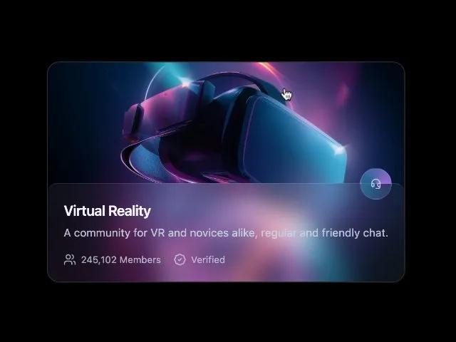 Карточка сообщества с эффектом при наведении. Glassmorphism, Tailwind CSS. Для списков сообществ, продуктов.