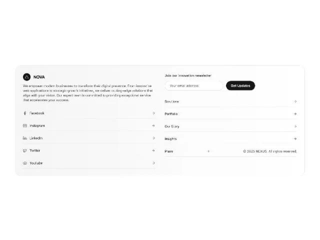 <svg xmlns="http://www.w3.org/2000/svg" width="18" height="18" viewBox="0 0 24 24" fill="none" stroke="currentColor" stroke-width="2" stroke-linecap="round" stroke-linejoin="round" data-lucide="arrow-right" class="lucide lucide-arrow-right h-4 w-4 text-neutral-500"><path d="M5 12h14"></path><path d="m12 5 7 7-7 7"></path></svg><p class="text-neutral-600 font-sans">© <span id="year" class="font-sans">2025</span> NEXUS. All rights reserved.</p>
