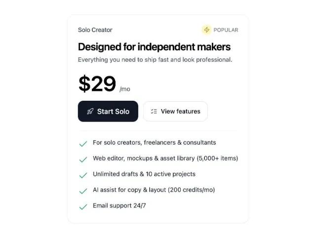 <div class="text-sm font-medium text-gray-600 tracking-tight">Solo Creator</div>